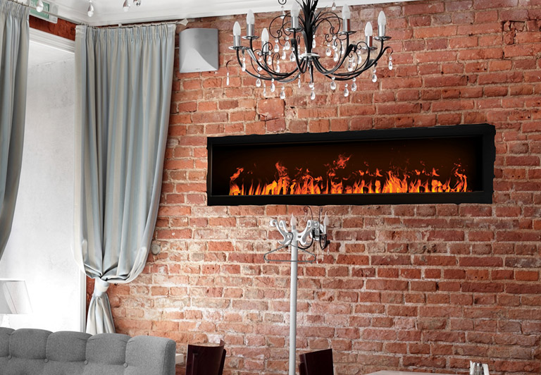 With unmatched realism and depth, this elegant linear electric fireplace stands apart from the rest. The styling options are endless with over 39 lighting combinations that provide three-dimensional viewing.